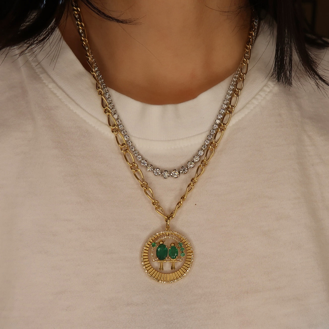 Emerald Diamond Lovebirds Pendant