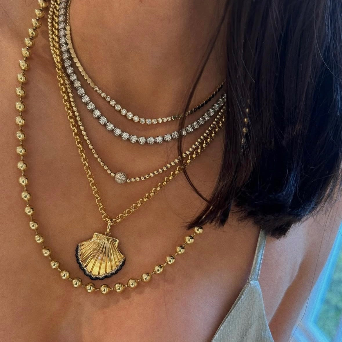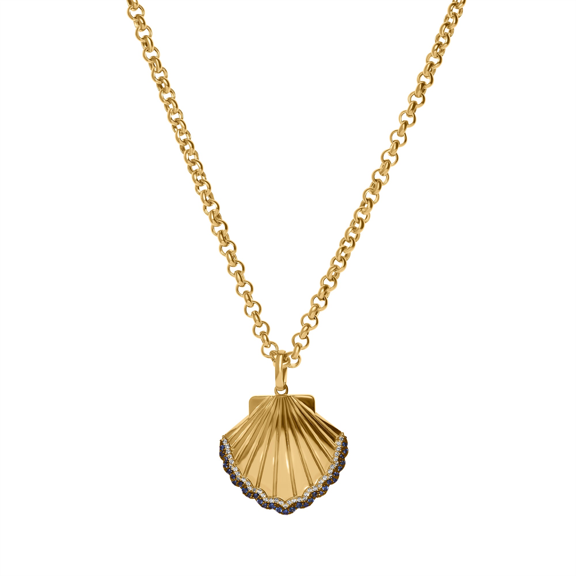 Diamond and Blue Sapphire Scallop Shell Pendant