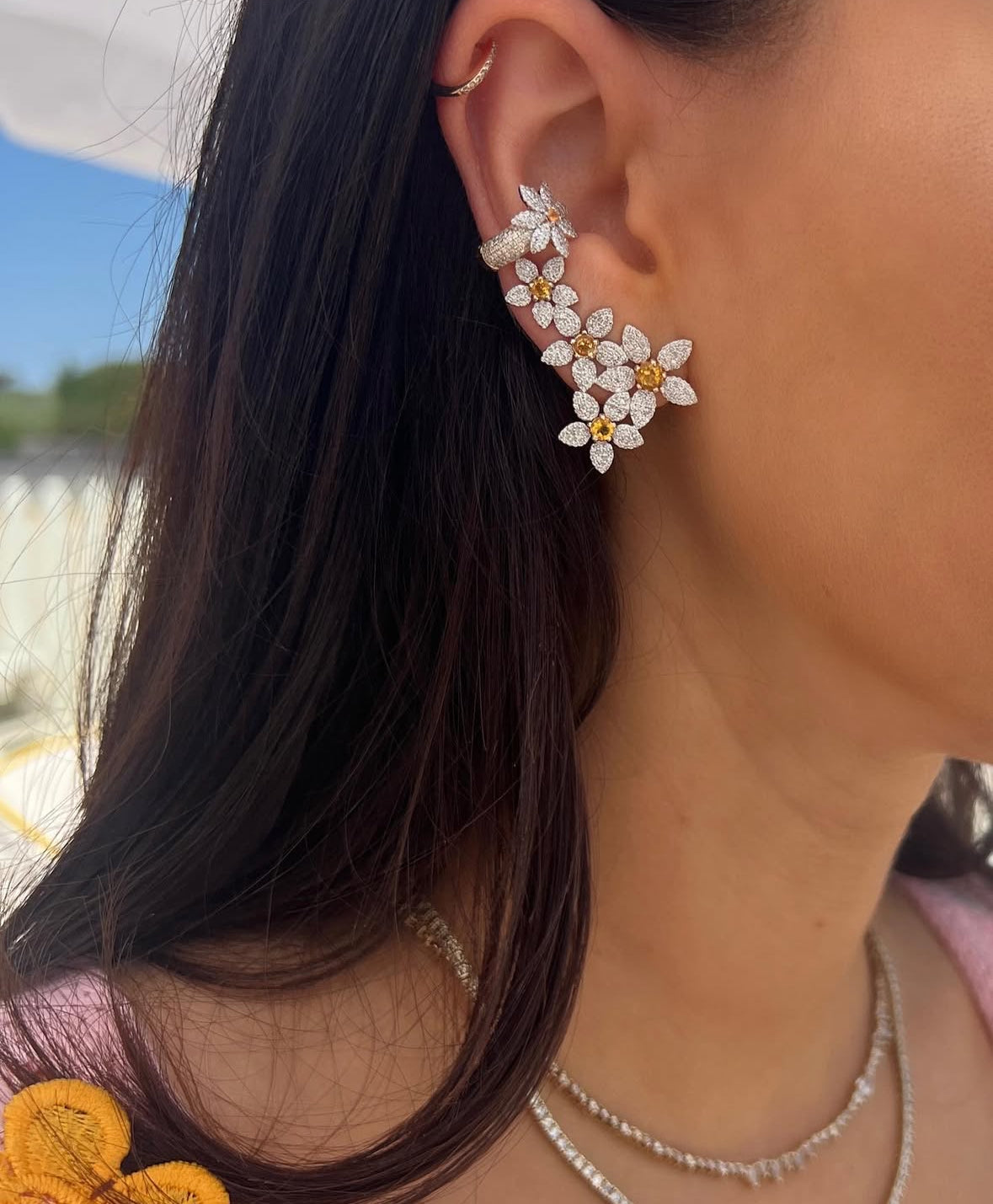 Diamond and Citrine Daisy Stud and Crawler Earrings