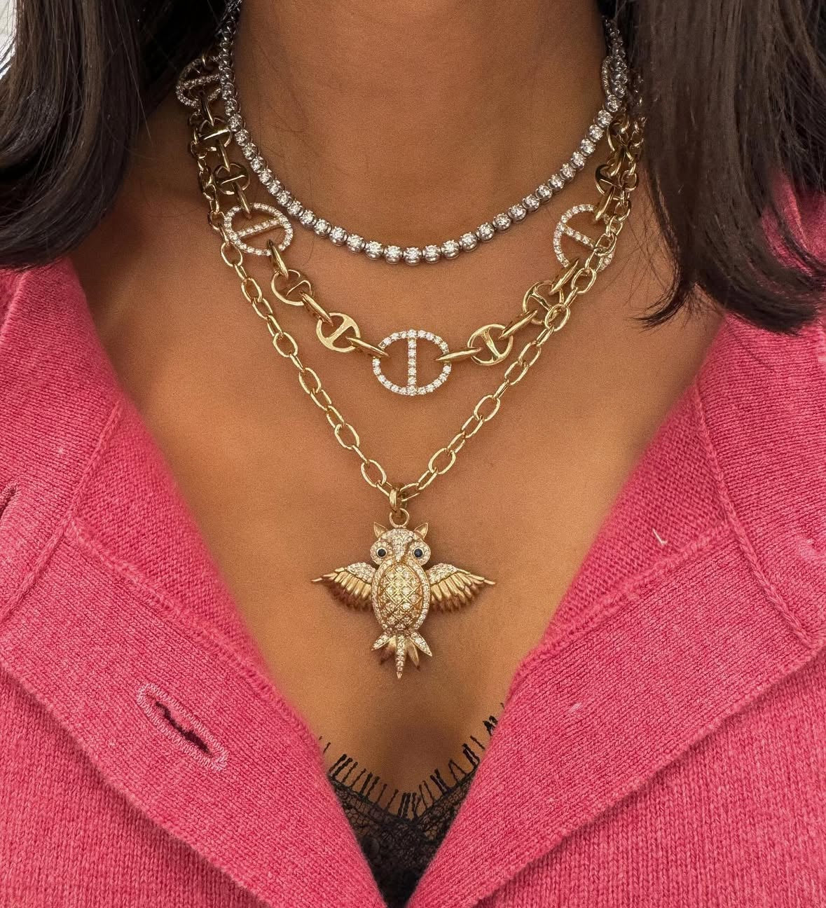 Diamond Rose Gold Bee on Paperclip Chain Necklace