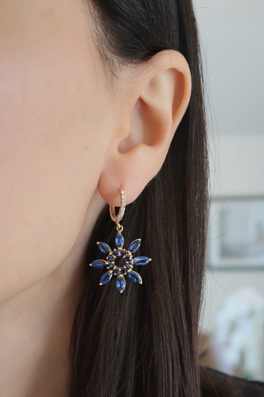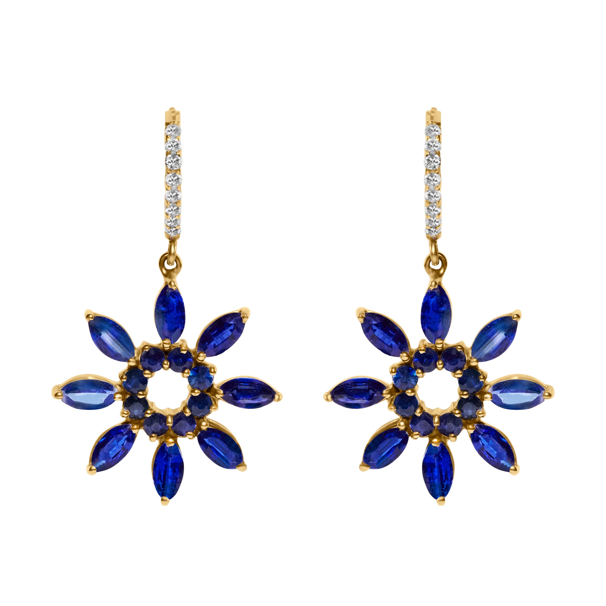 Kyanite Diamond Flower Earrings