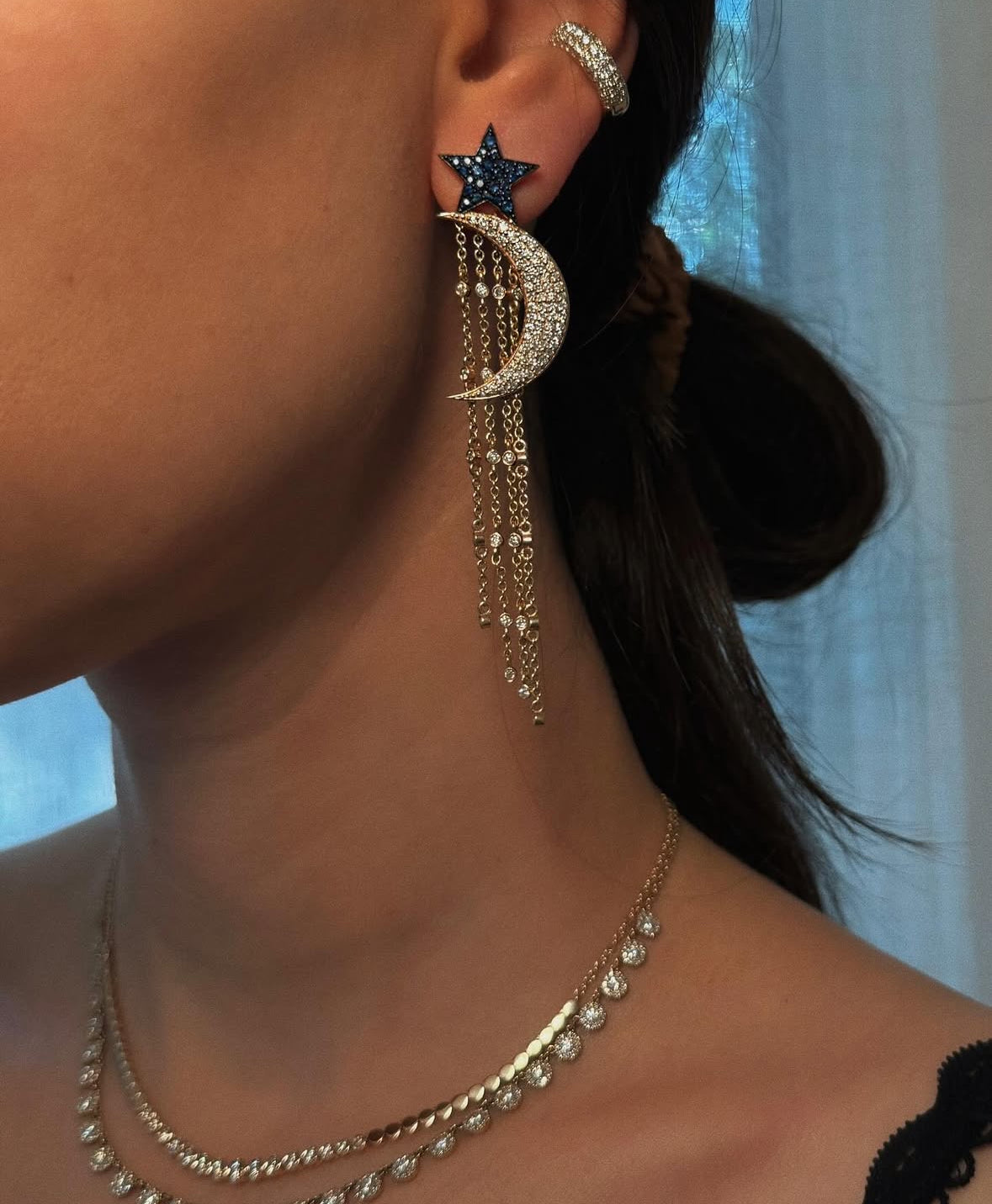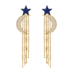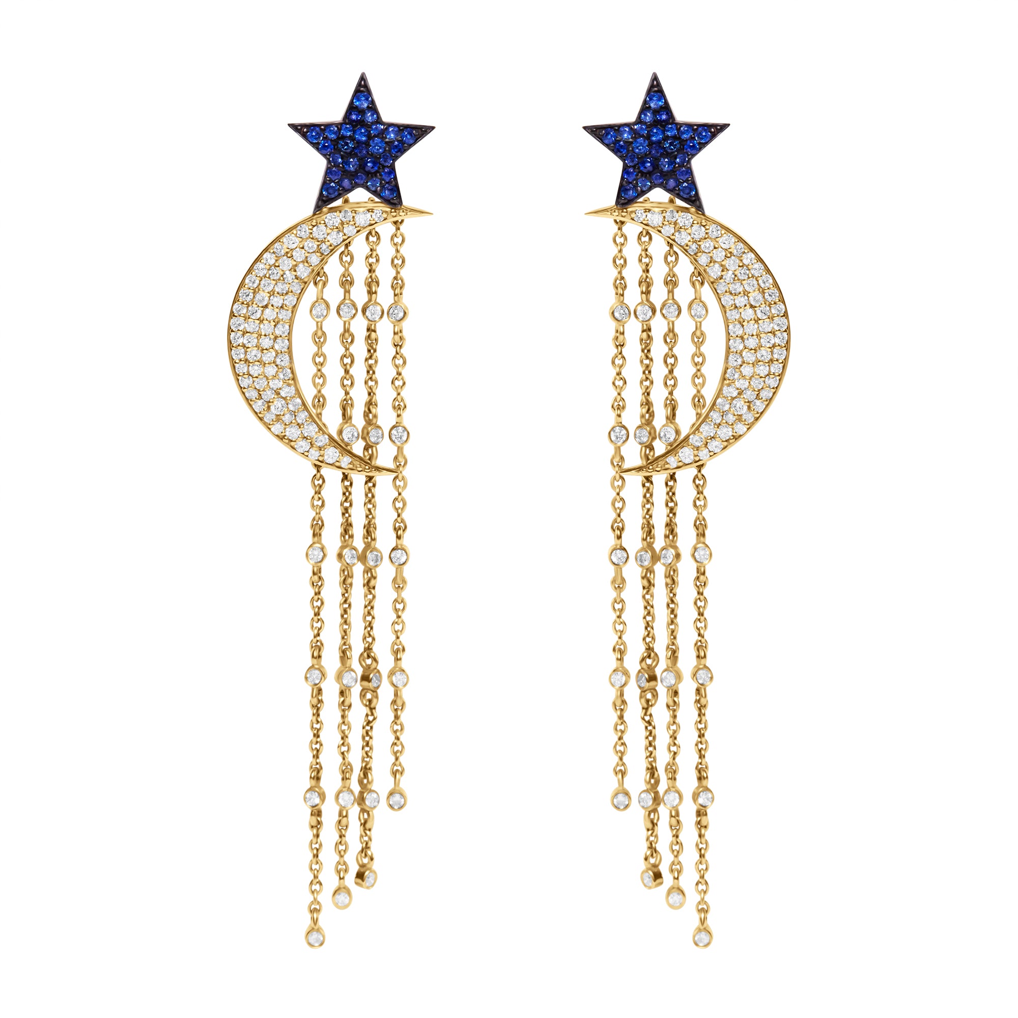 Moon Star Rain Diamond and Blue Sapphire Earrings