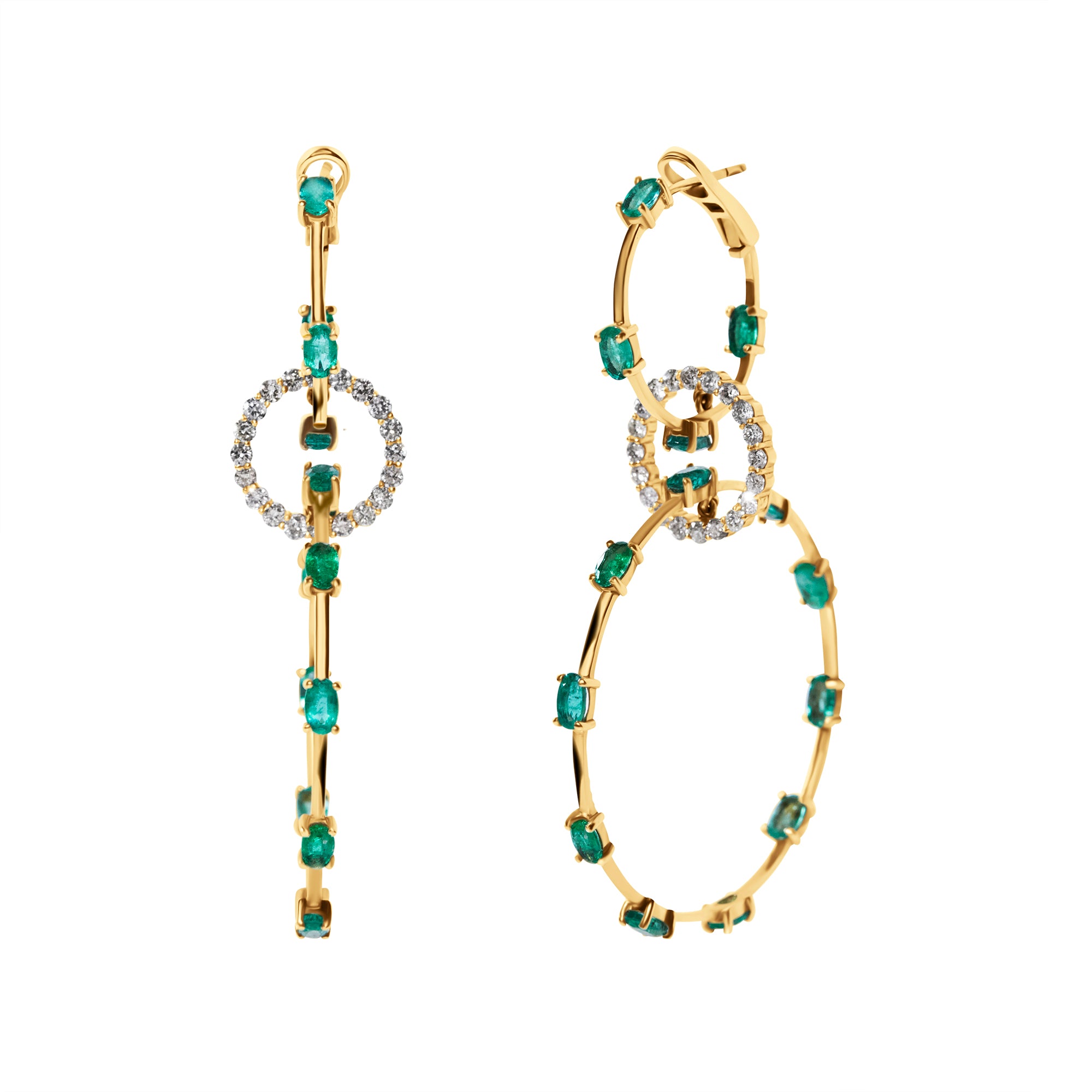 3 Hoop Dotted Emerald Diamond Earrings