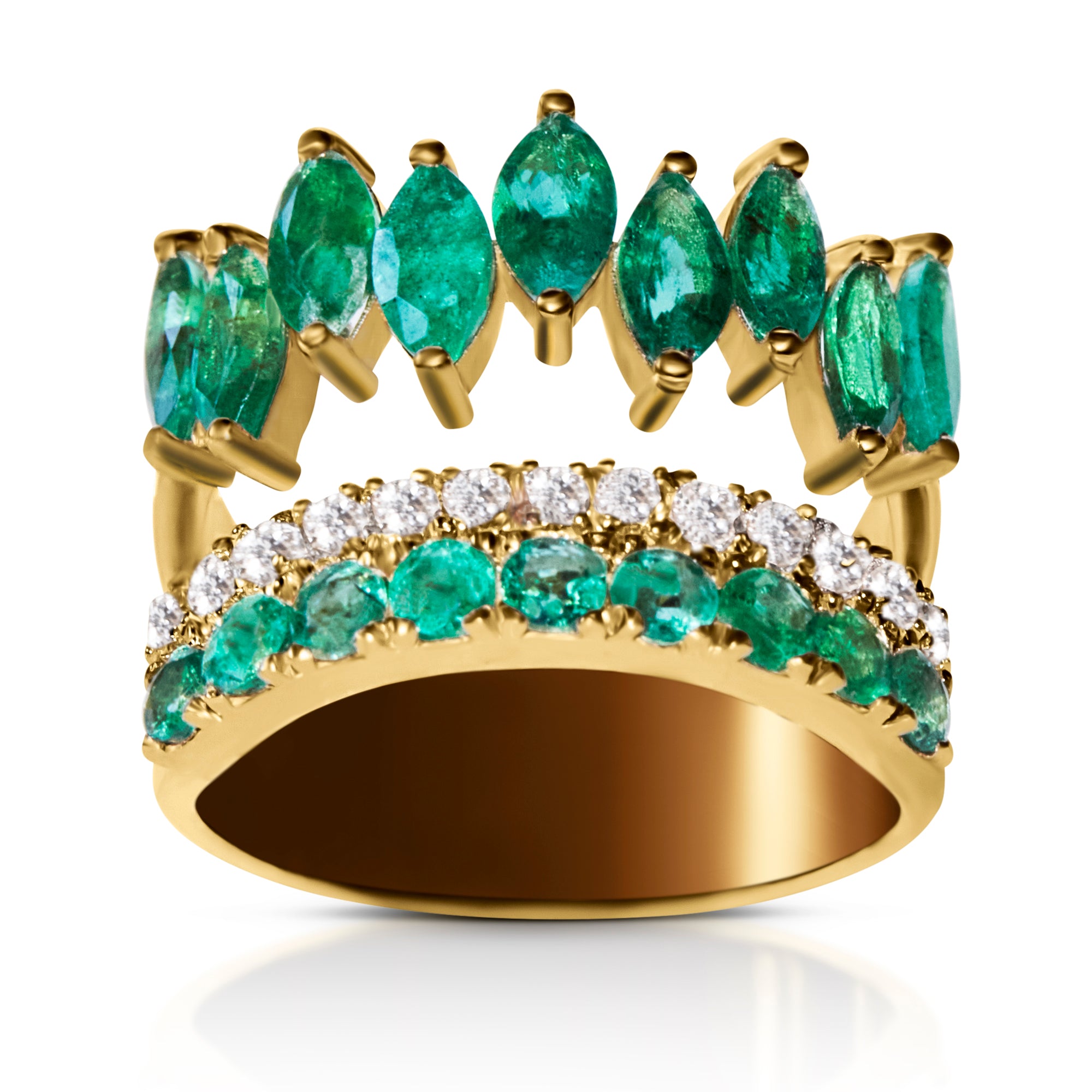 Emerald and Diamond Double Band Ring