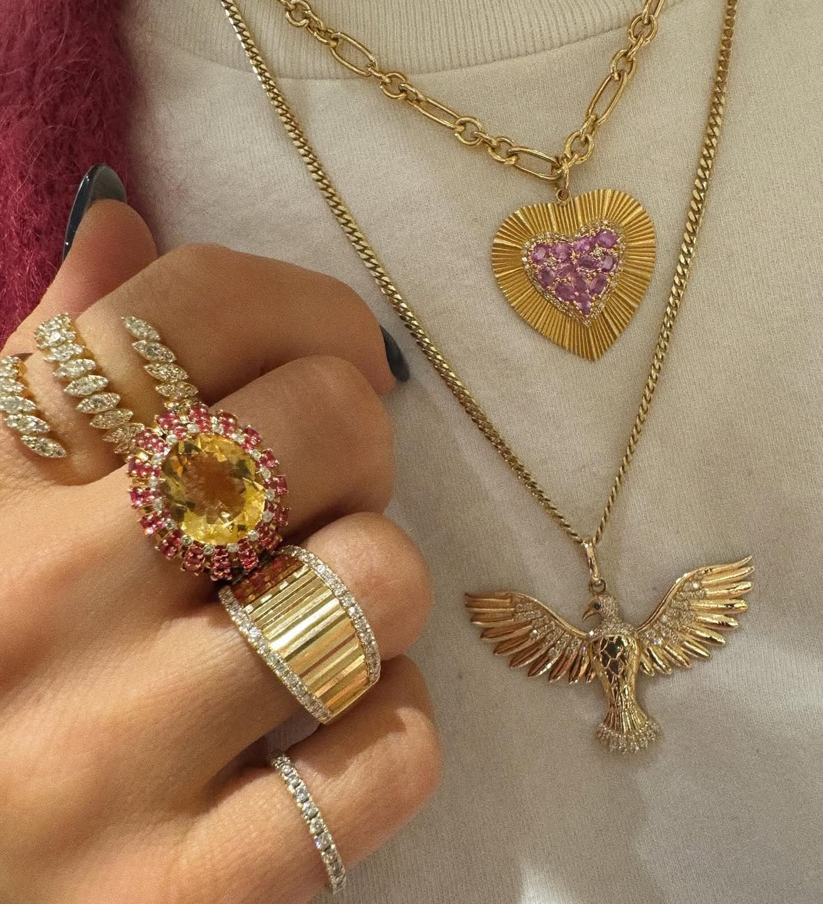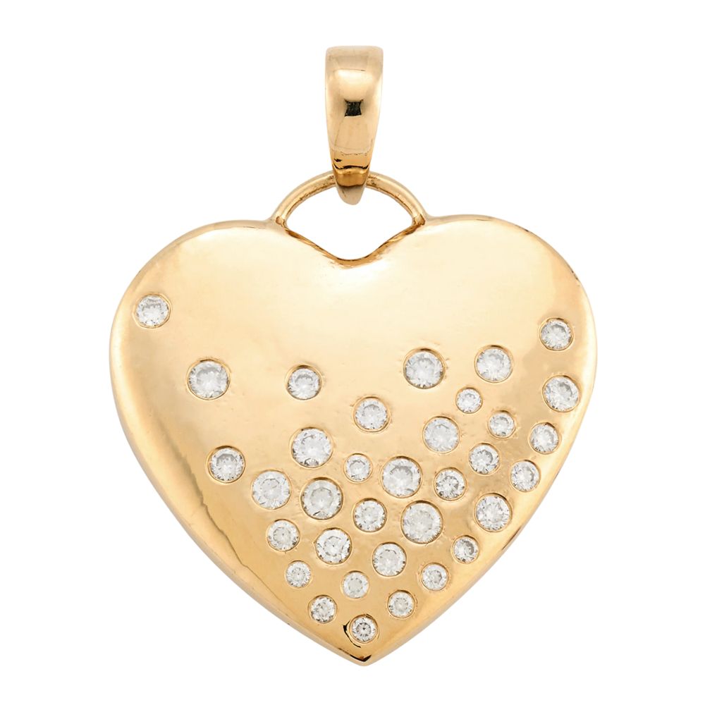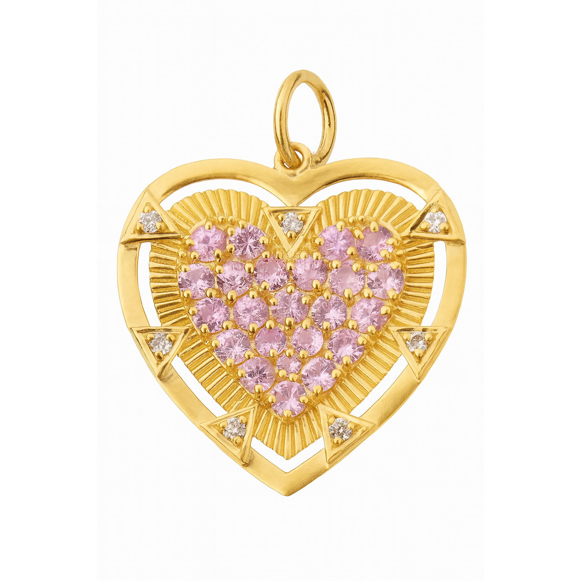 Diamond and Pink Sapphire Fluted Heart Pendant