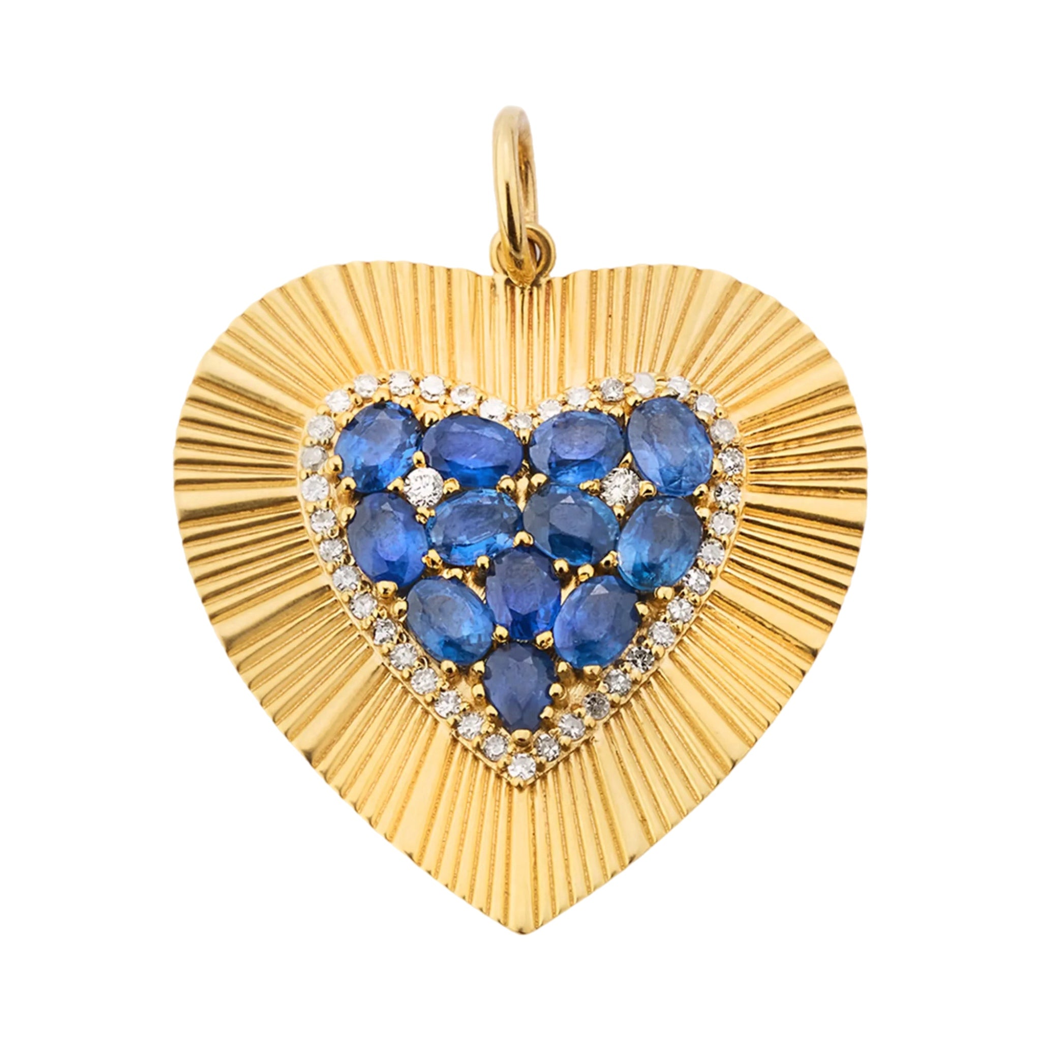 Diamond and Blue Sapphire Fluted Heart Pendant