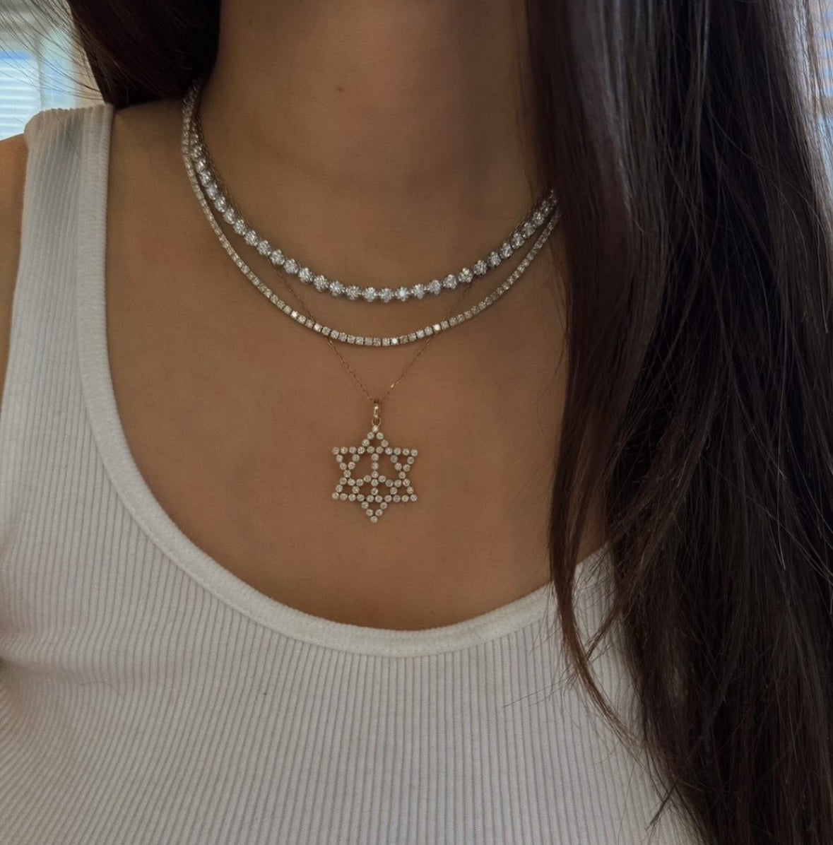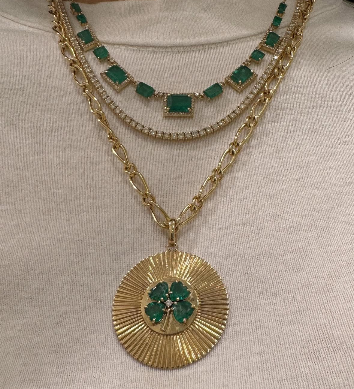 Diamond Emerald Heart Crown Prong Tennis Necklace