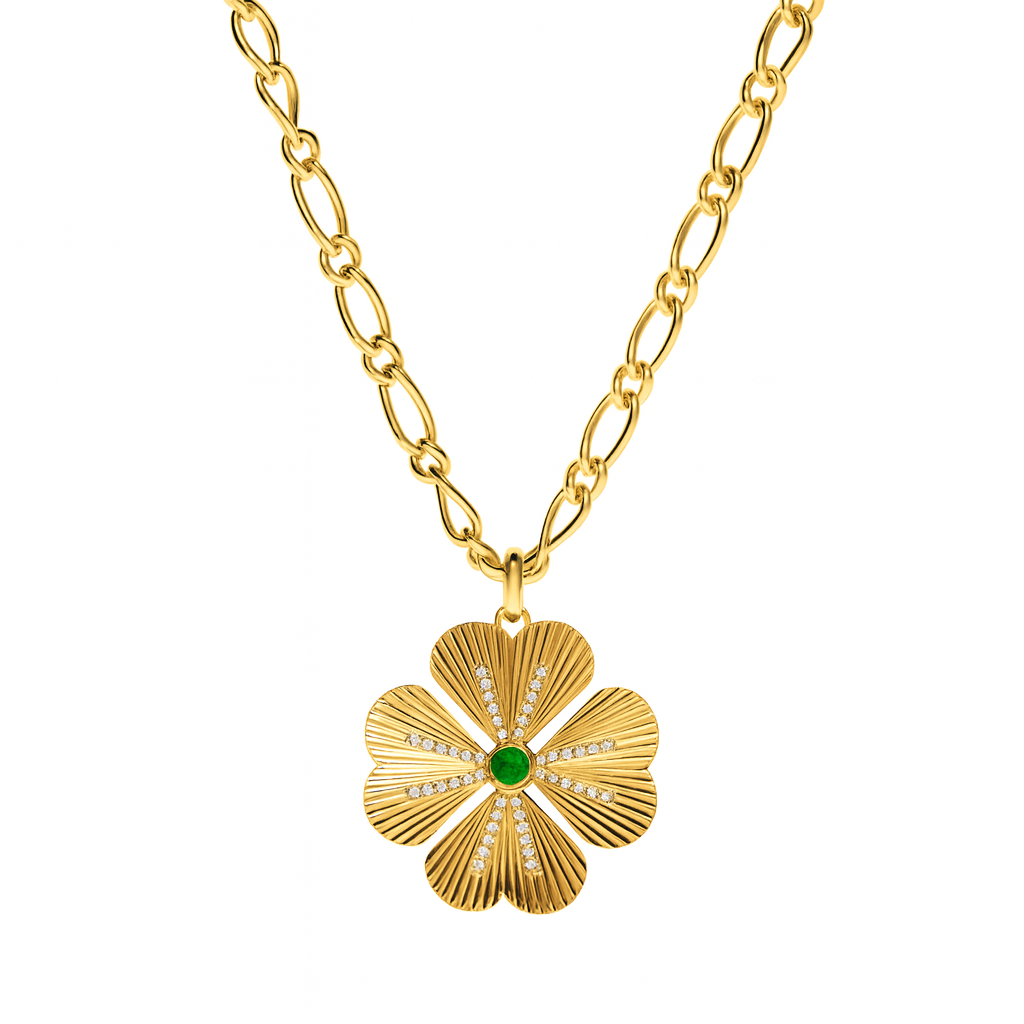 Diamond and Emerald Clover Lucky Pendant