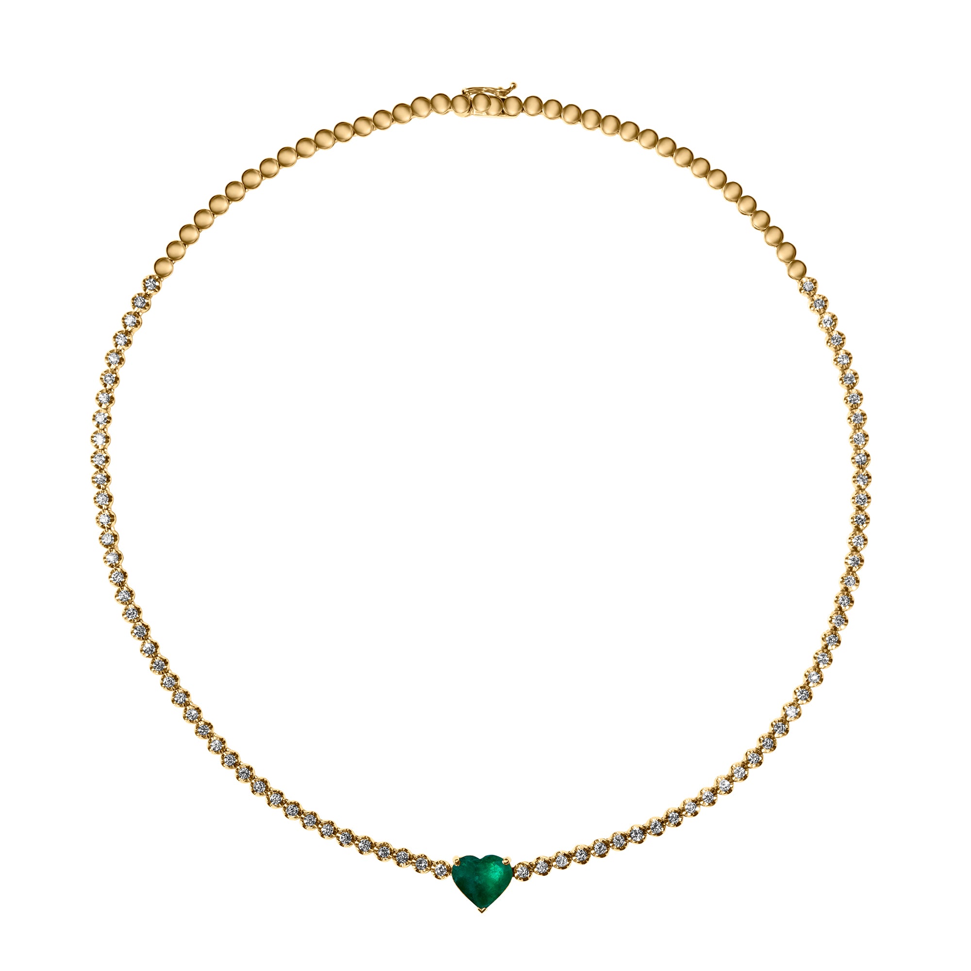 Diamond Emerald Heart Crown Prong Tennis Necklace
