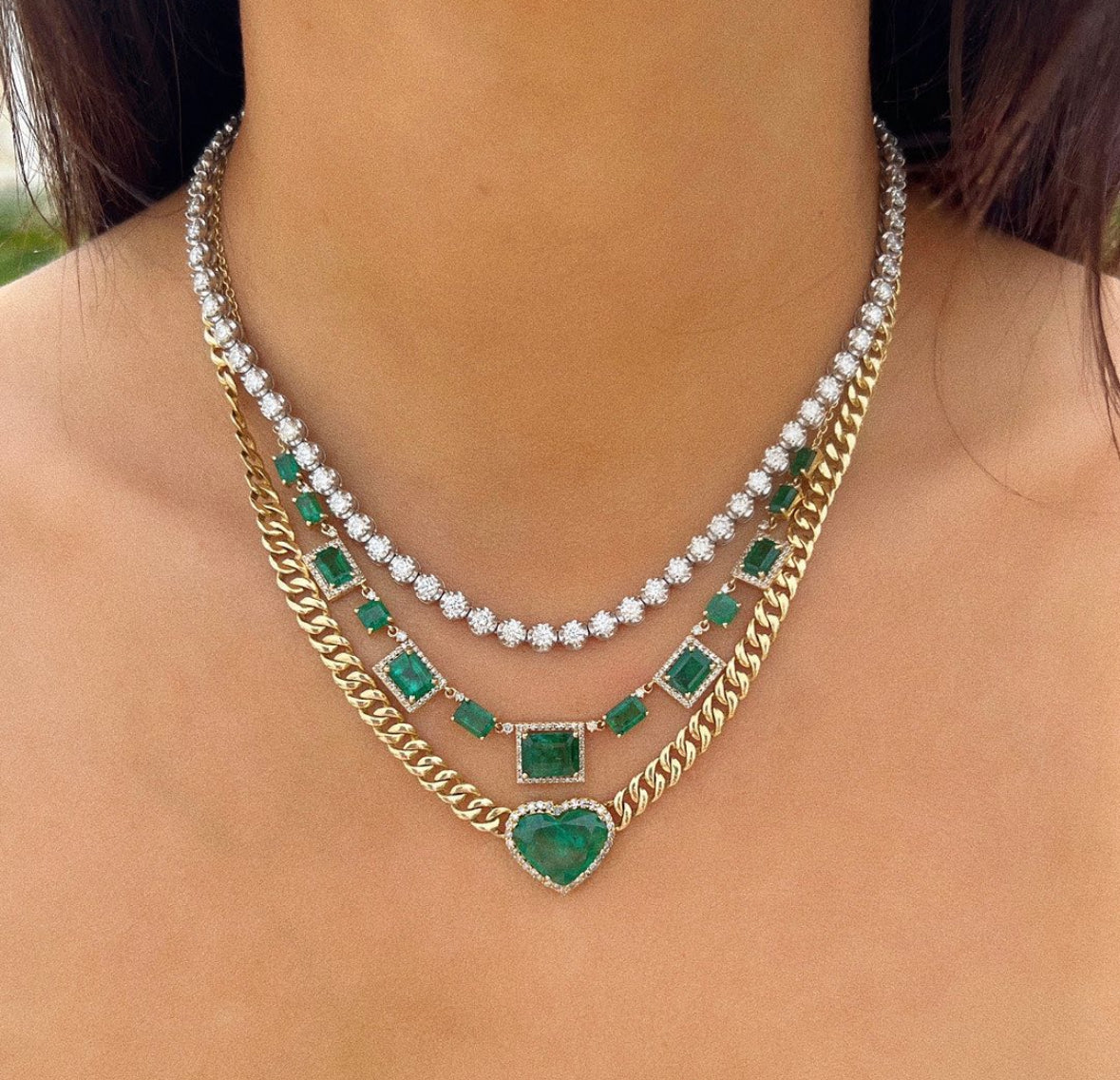 Emerald Heart Cuban Link Necklace