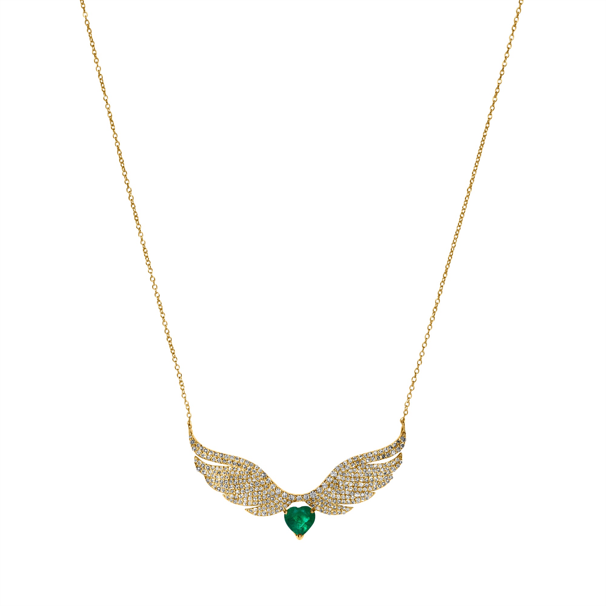 Emerald Heart Wing Necklace