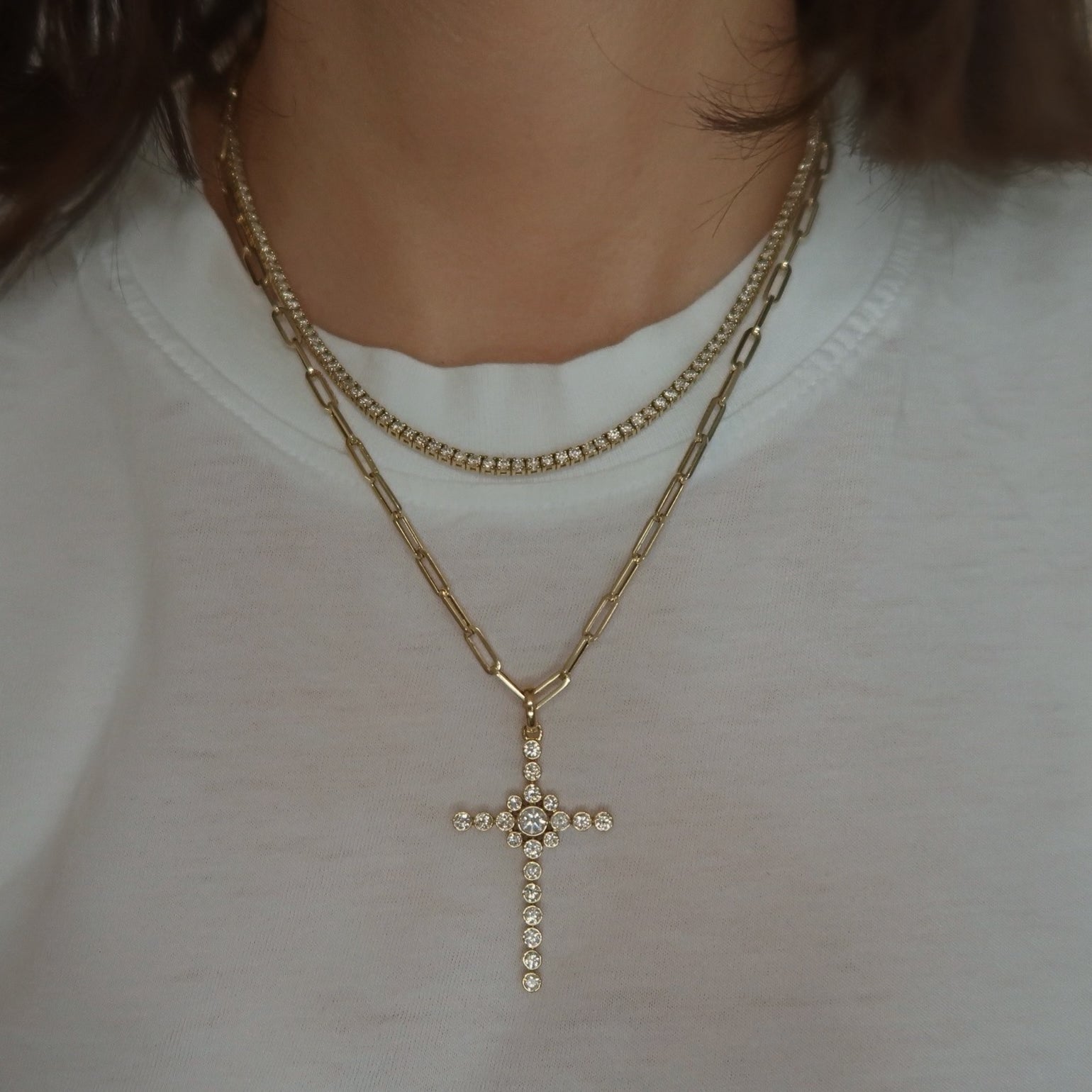 Bezel Diamond Cross Pendant