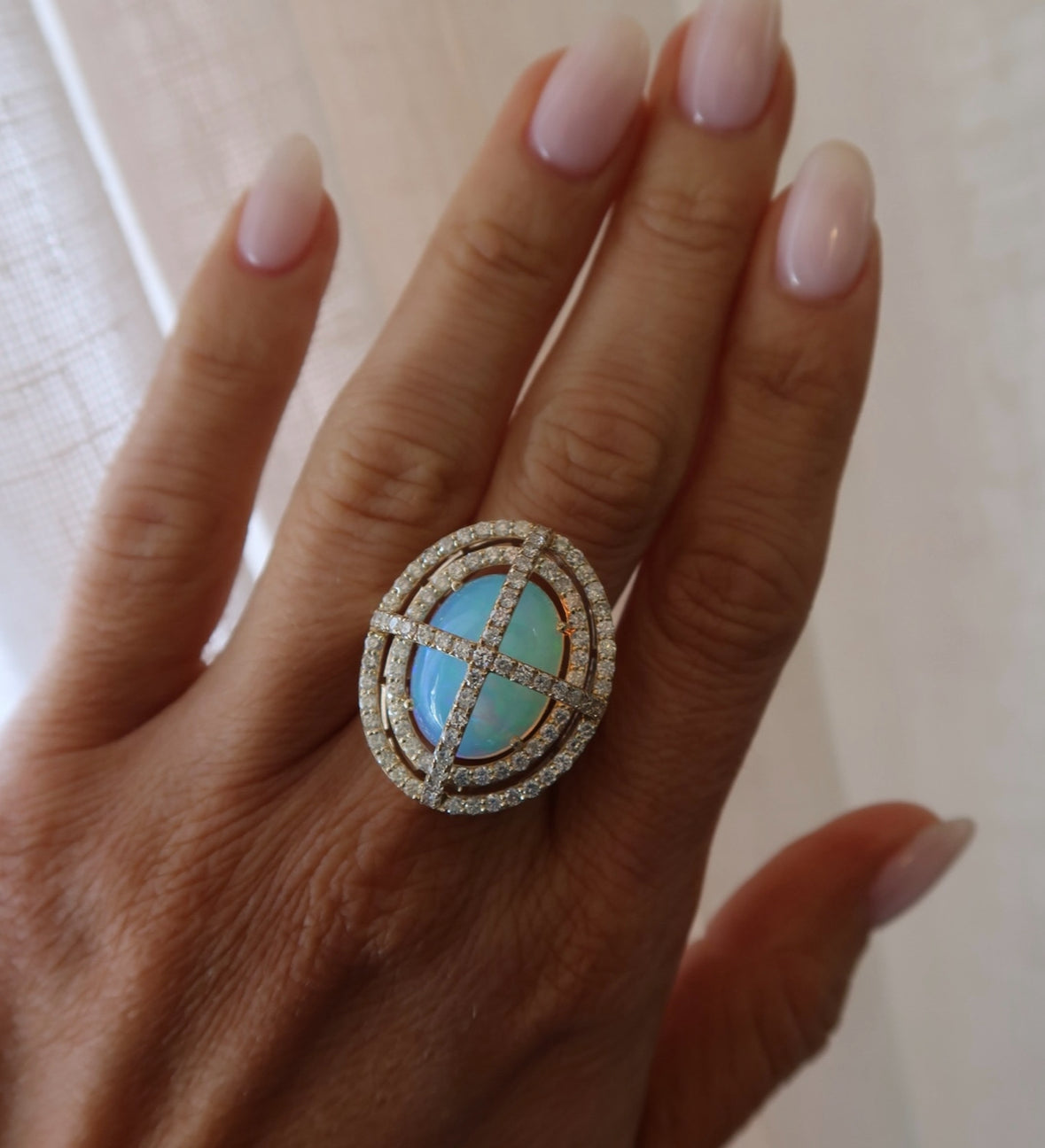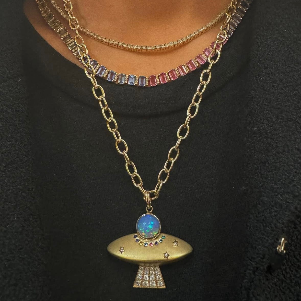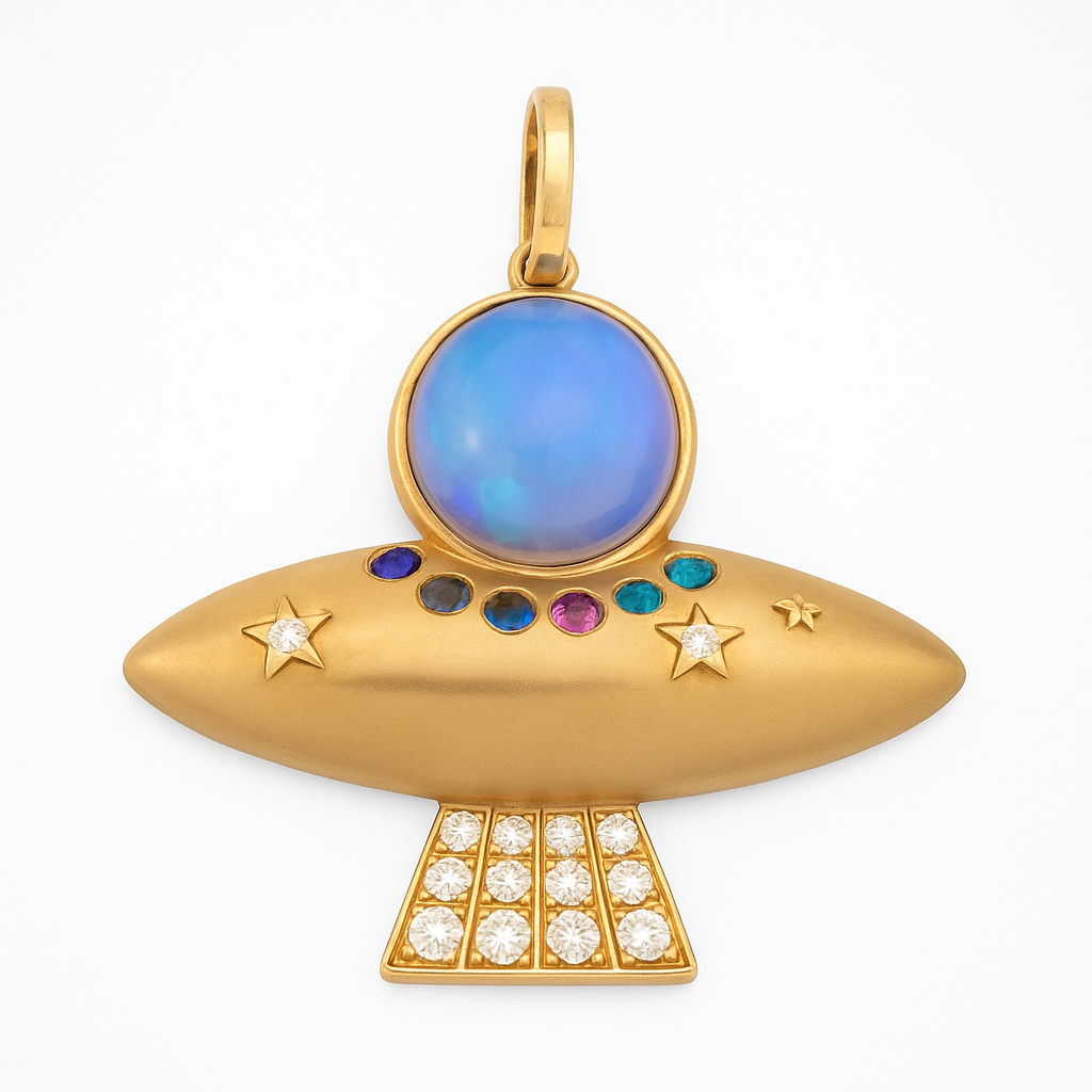 Diamond, Opal and Multicolored Gemstone UFO Pendant