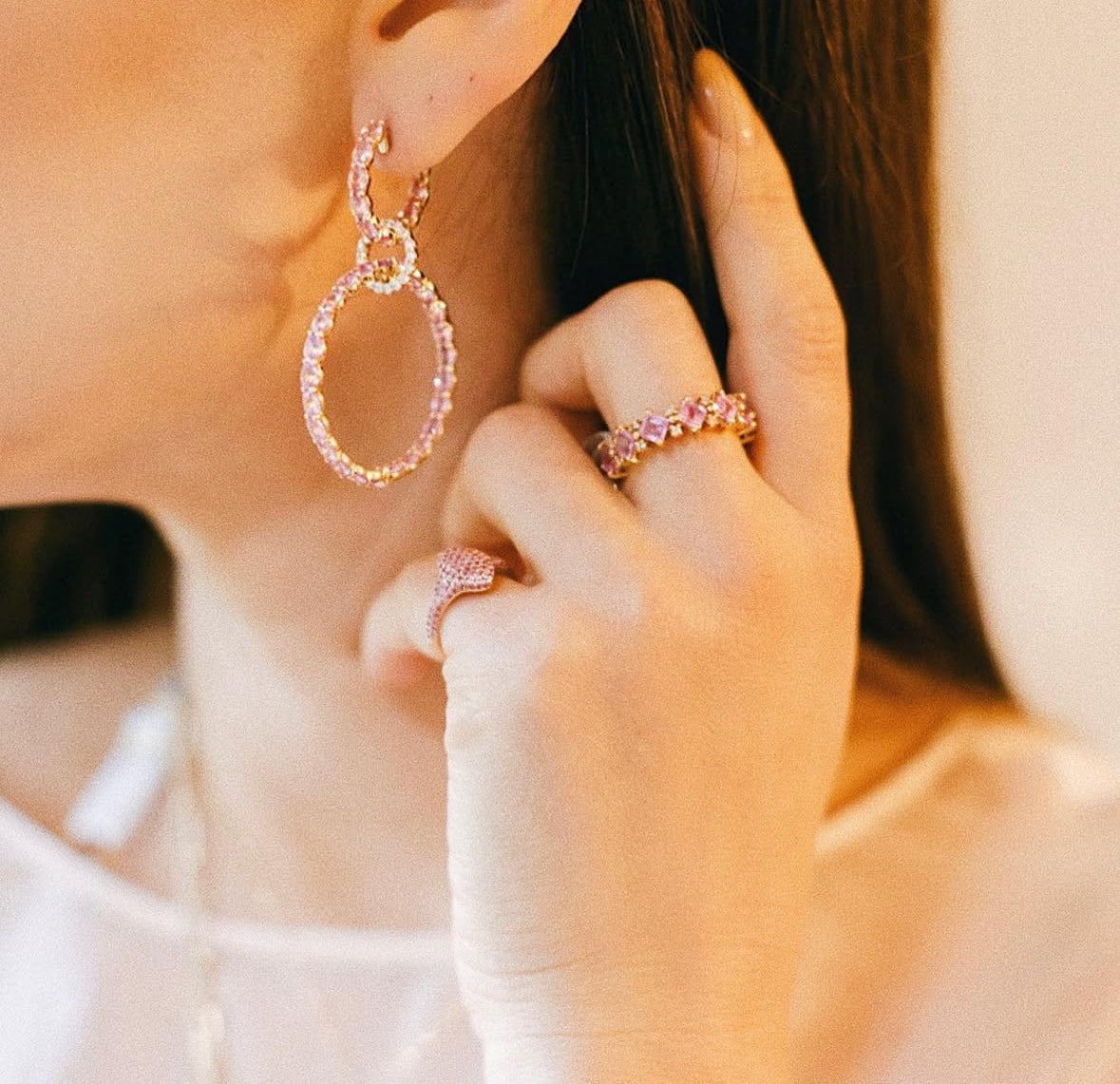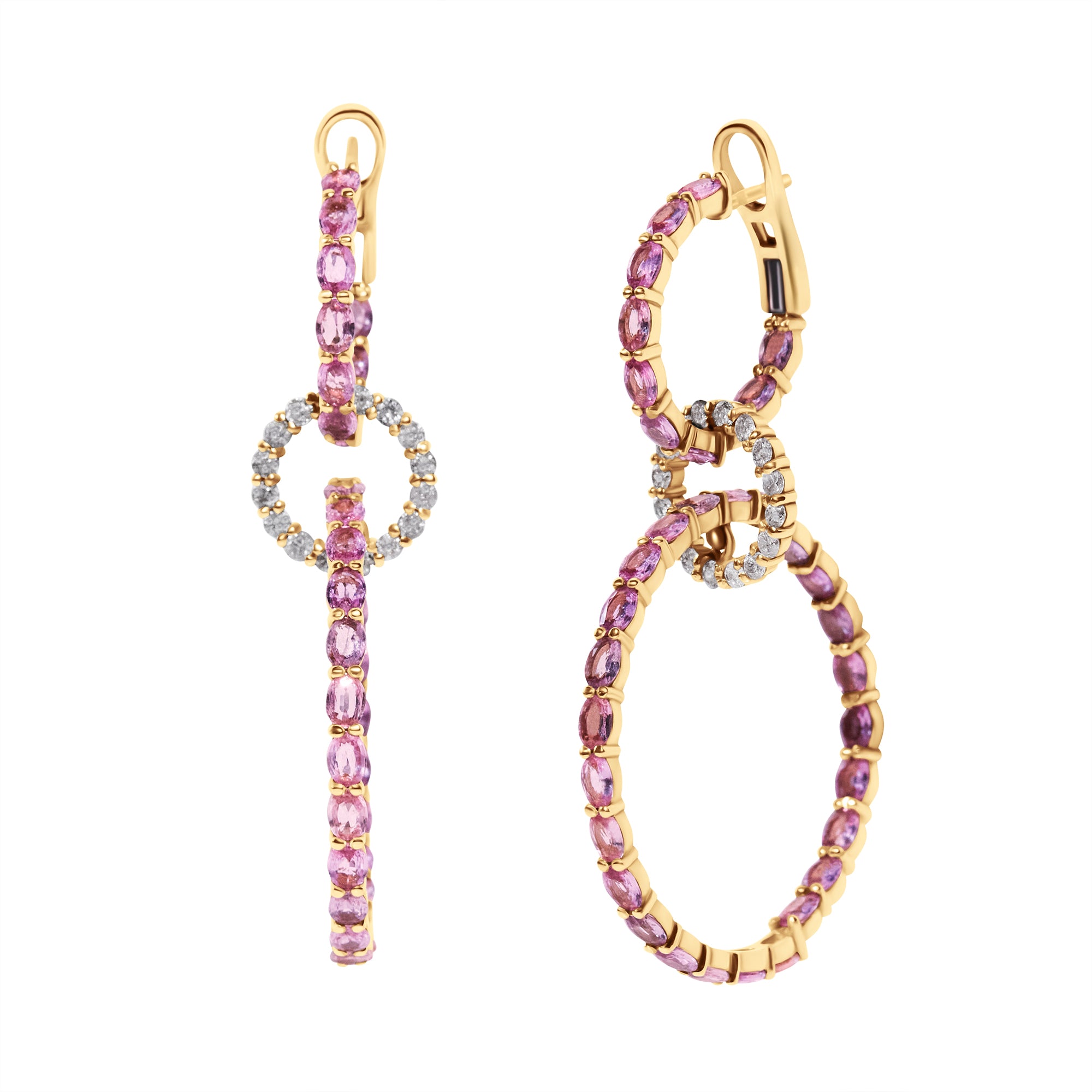 3 Hoop Pink Sapphire Diamond Earrings