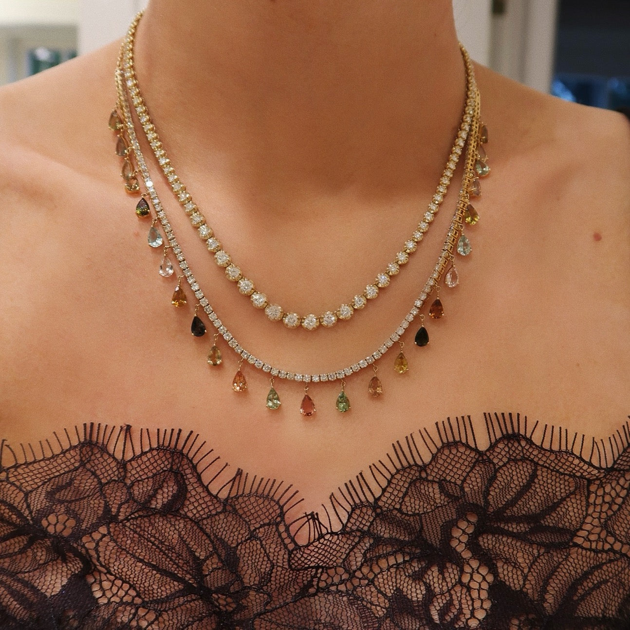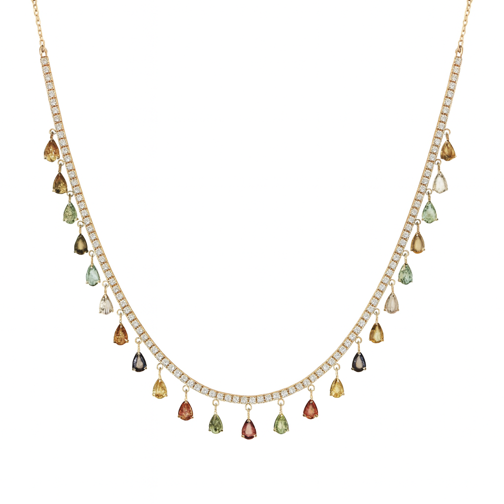 Diamond Multicolor Tourmaline Pear Dangle Tennis Necklace