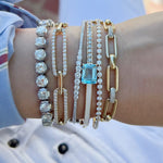 White Enamel Diamond and Blue Topaz Bracelet